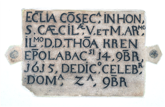 V razgibanem obdobju katoliške prenove konec 16. in v začetku 17. stoletja so kapucine kot nosilce “nove, evangeljske pridige” v našo deželo vabili in jih v to delo vključevali škofje. Neposredne pobude za ustanavljanje samostanov so prihajale največkrat od prebivalcev posameznih mest. Tako je na slovenskih tleh v kratkem času nastala vrsta kapucinskih samostanov: 1591 v Gorici, 1606 v Ljubljani, 1609 v Celju in potem v vseh večjih slovenskih mestih. Za ustanovitev samostana v Celju so se zavzeli meščani, ki so spoznali kapucine, ko so se ti grede iz Gradca v Ljubljano ustavljali v Celju in tudi tu oznanjali božjo besedo. Zemljišče na Bregu je za gradnjo samostana poklonil celjski meščan Zupanič. O začetkih celjskega samostana imamo natančne podatke. Graški nuncij škof Salvago, ki je opravil vizitacijo teh dežel, je 1. junija 1609 iz Gradca poročal v Rim: “Kmalu bodo začeli graditi dva (kapucinska) samostana, enega v Celju, drugega na Reki, potem pa še v Mariboru in na Ptuju, da bi se krepila vera, kar je posebna želja nadvojvode.” Dne 12. oktobra je pisal iz Lipnice: “Moral se bom podati v Celje. Za to me nujno naproša nadvojvoda. Tod se bo gradil kapucinski samostan.” In potem še nuncijevo sporočilo iz Celja dne 26. oktobra: “Včeraj (25. oktobra 1609) sem položil temeljni kamen za kapucinsko cerkev, ki bo gotovo dograjena v enem letu.” Cerkev in samostan so dejansko začeli graditi, kot pravijo nekateri kasnejši zapisi, šele leta 1611. Gradili so seveda tako kot vsepovsod: v prvi vrsti s prostovoljnim delom vernikov, obenem pa tudi s pomočjo zbrane miloščine. Ni šlo torej tako naglo, kot si je zamišljal nuncij; gradnja je trajala nekaj let. Kdo jo je vodil od začetka, ni znano, dovršil pa jo je gvardijan p. Martin iz Trevisa. Cerkev je dne 14. novembra 1615 posvetil ljubljanski škof Tomaž Hren. To spričuje v latinščini napisan zapis na kamniti plošči za glavnim oltarjem: Cerkev je v čast sv. devici in mučenki Ceciliji dne 14. novembra 1615 posvetil prečastiti gospod Tomaž Hren, ljubljanski škof; posvetitev se praznuje drugo nedeljo v novembru. Cerkev je poleg glavnega oltarja kmalu dobila še dva stranska: levi je bil posvečen Materi božji, desni sv. Antonu Padovanskemu. br. Metod Benedik