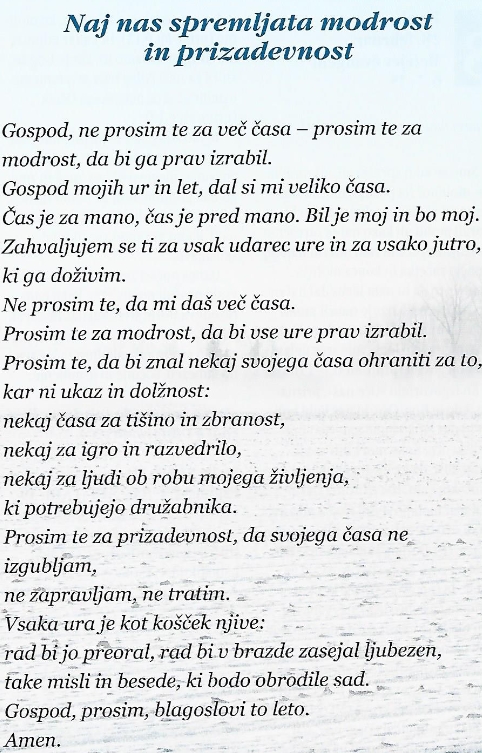 na začetku novega pastoralnega in katehetskega leta bi vas želel spodbuditi, da se kot občestvo naše krajevne Cerkve odpremo Svetemu Duhu in z obnovljenim navdušenjem sprejmemo poslanstvo oznanjevanja vere, vsak v okolju, kjer živi in dela. Prvo leto uvajanja v sinodalno razmišljanje je za nami. Premiki so narejeni. Odpiranje Svetemu Duhu pušča sledove. Okrepimo vezi novega življenja, ki ga Duh plete med nami in se zoperstavimo duhovom malodušja, skepticizma in relativizma, ki dušijo naša okolja.